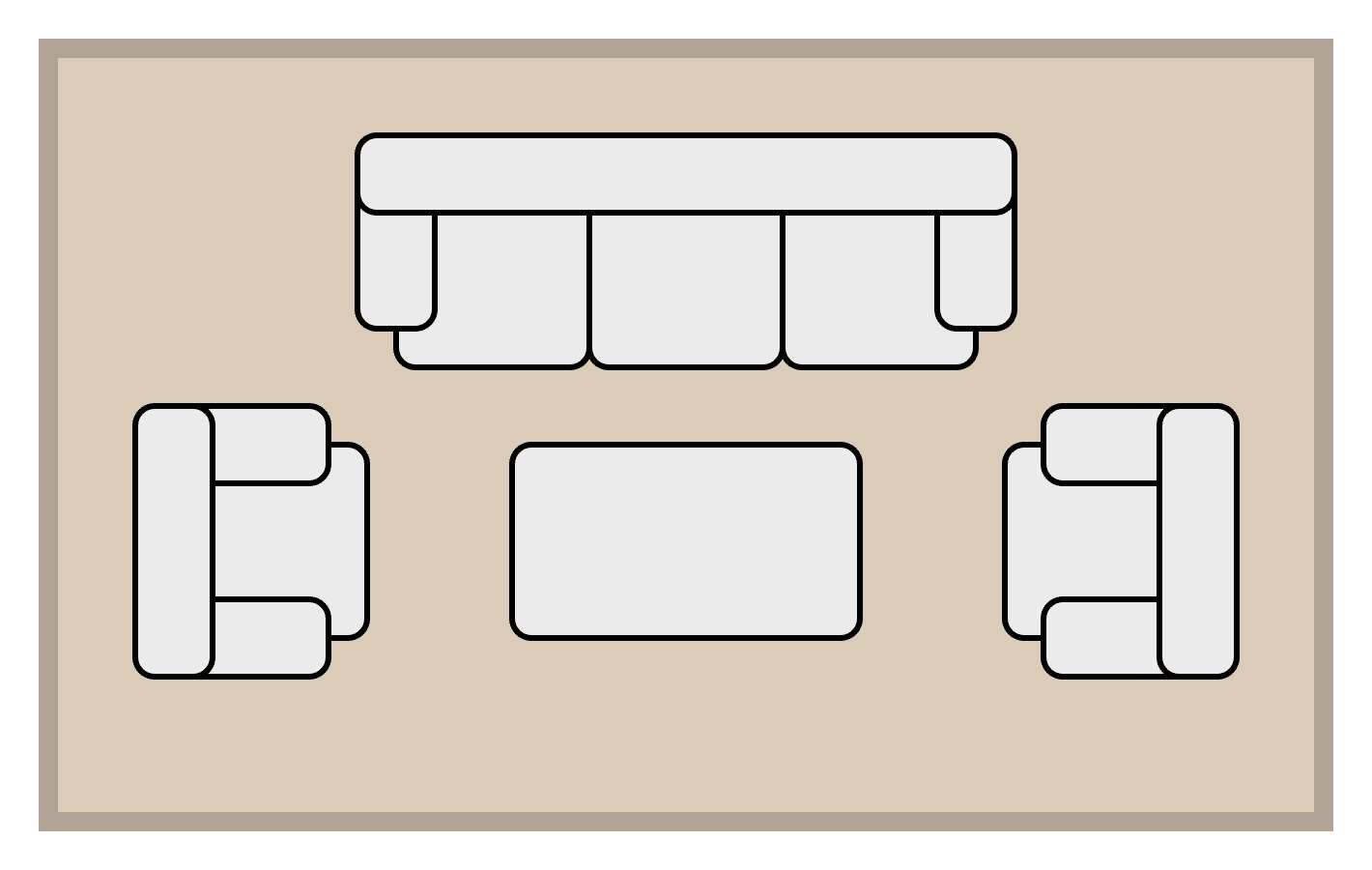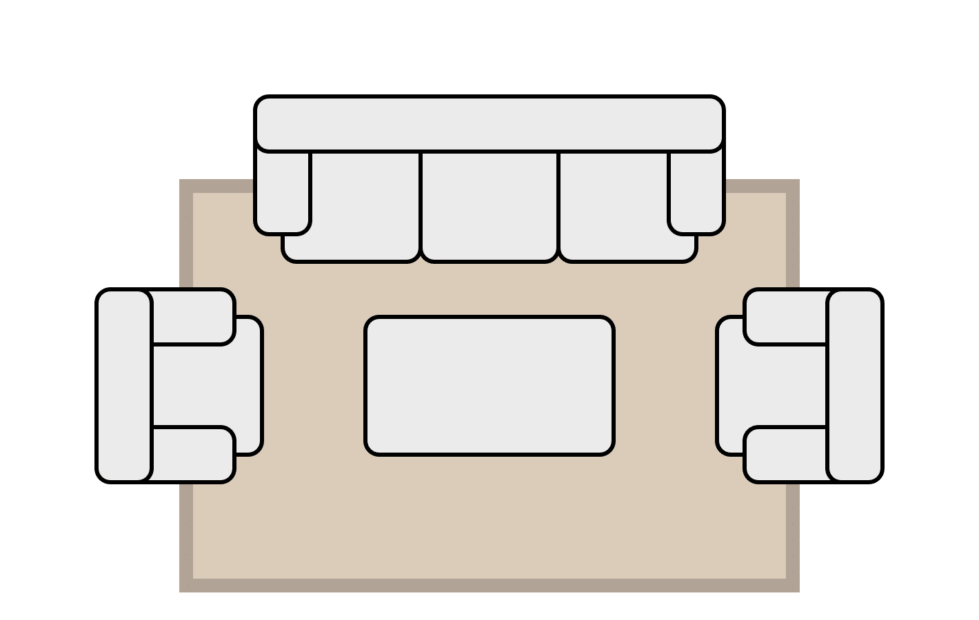 En esta configuración, todas las patas del conjunto de muebles de la sala descansan sobre la superficie del tapete.