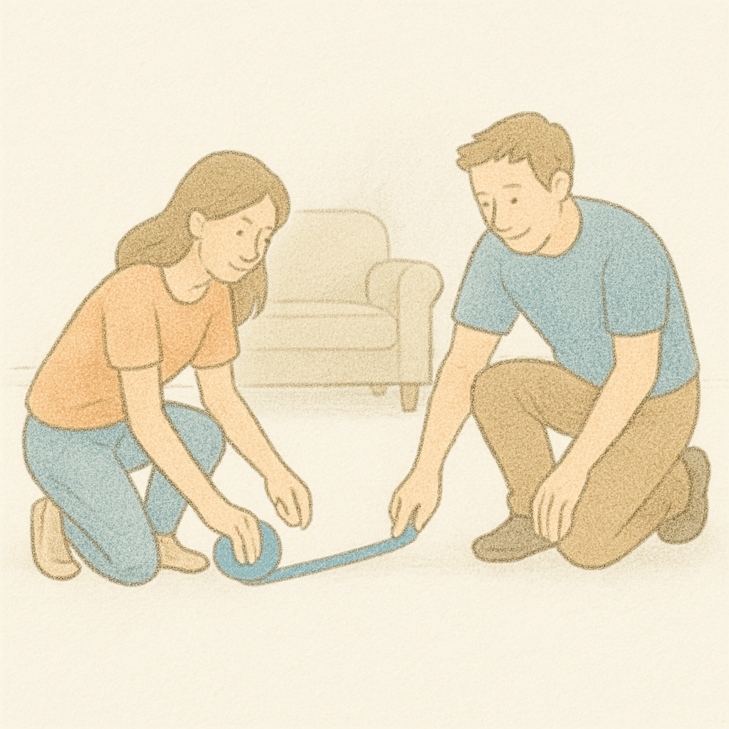 Utiliza la masking tape o cinta azul para marcar el área que ocupará el tapete en el suelo. De esta forma podrás darte una idea más vívida de cómo se verá el tapete en tu espacio, y de ser necesario, realizar ajustes.